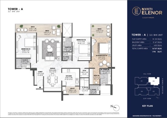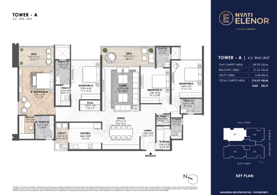 This residential community is on 1.81 acres of land and features 2 striking towers rising up to 32 stories. Inside, you’ll find spacious 3,4,5, and 6 BHK apartments ranging from 1768 sq. ft. to 3940 sq. ft., crafted to give you room to breathe, grow, and create lasting memories.