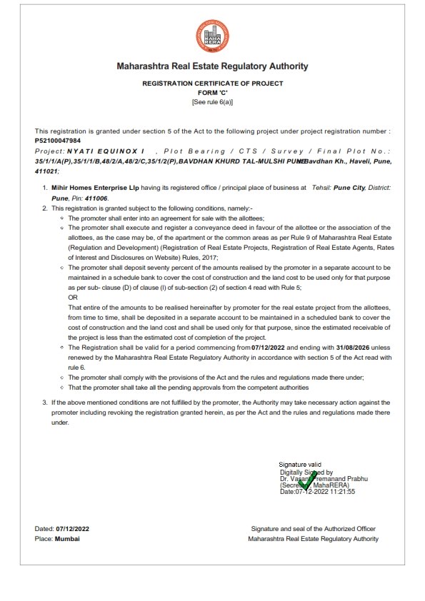 The project has been registered via MahaRERA registration number: P5210004891547984 is available on the website maharera.mahaonline.gov.in under registered projects.