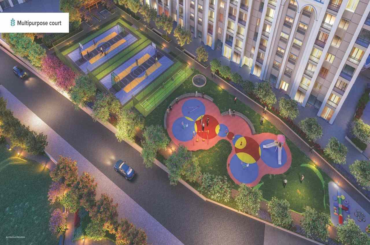 • Spacious Living: Choose from 2 & 3 BHK flats ranging from 838 sq. ft to 1,213 sq. ft. carpet area, designed for comfort and modern living.